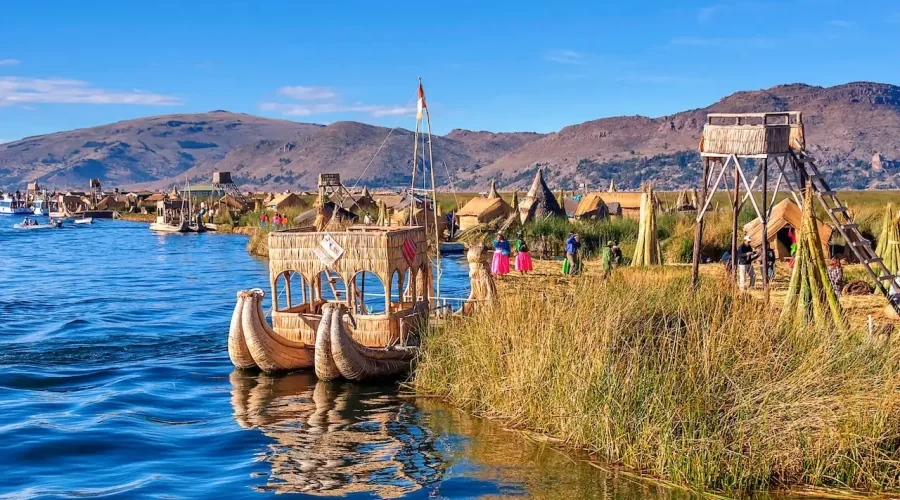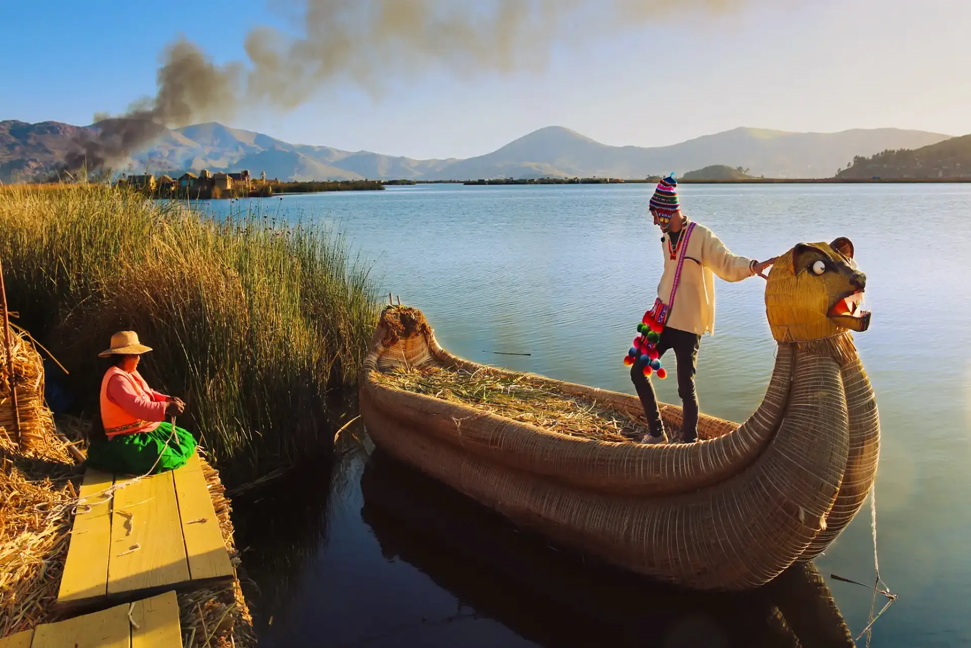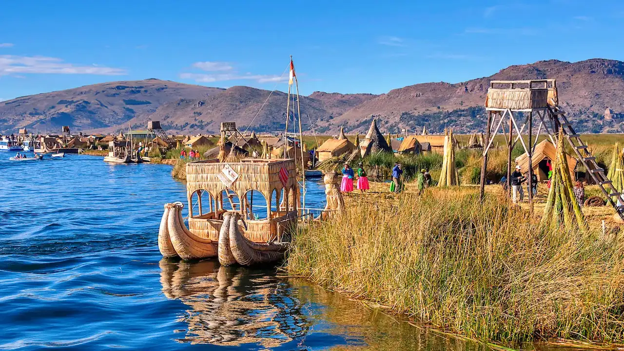 Our first destination is the incredible floating islands of the Uros. During the boat ride, you will learn how these communities build and maintain their islands entirely from the native totora reeds. Upon arrival, you will be welcomed by the residents, who will share their culture, ancestral traditions, and unique lifestyle. You will also have the option to take a short ride on a traditional reed boat.